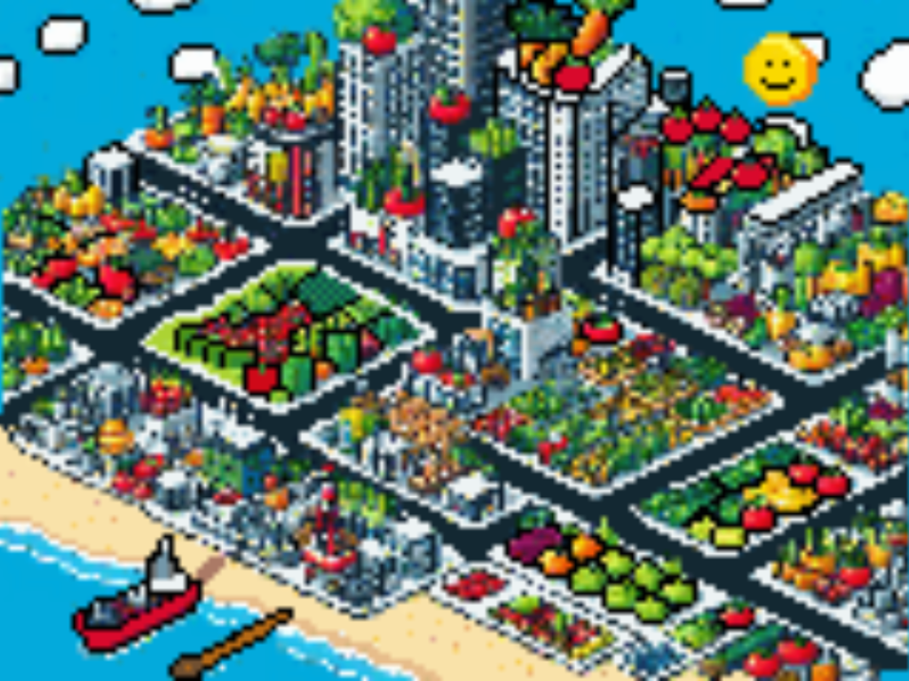 Im Spiel werden Gamification, Infotainment, Storytelling und Zielformulierungen kombiniert. Hier im Bild ist Foodtopia zu sehen. Der Ort wo die Geschichte ihren Lauf finden wird.